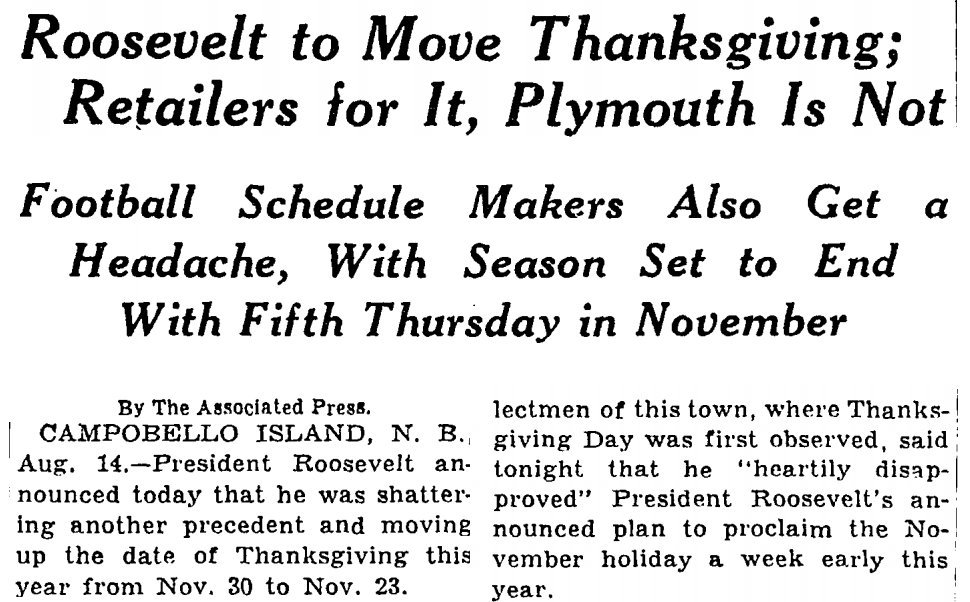 Republicans were not down with this change, and retaliated by calling it “Democrat Thanksgiving” (or “Franksgiving”). They celebrated the following Thursday, calling that “Republican Thanksgiving.” Many Republican governors defied the change of date and observed the holiday on the last Thursday of the month, anyway. Republicans have some experience of being childish pre-Obama, it seems.